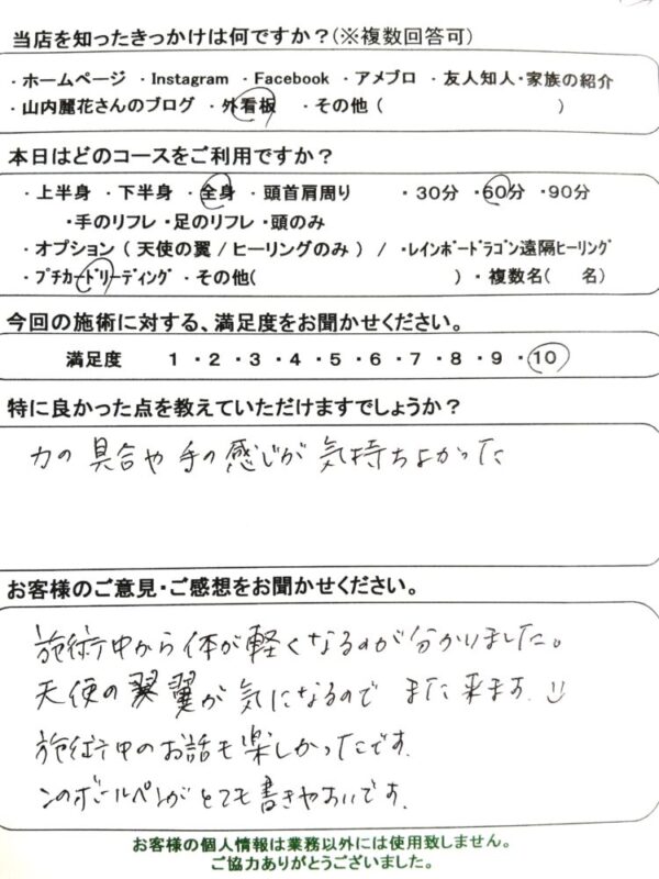 お客様の声 | ヒーリング&もみほぐしの龍とSola | 世田谷 リラクゼーションサロン